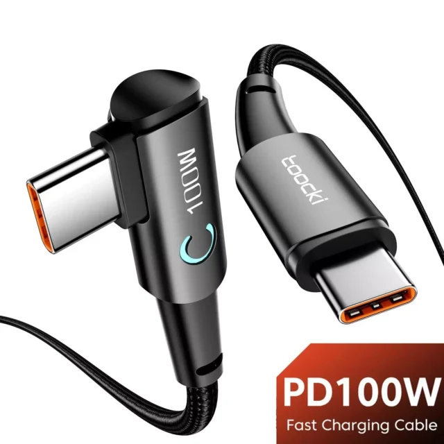 100W USB-C to USB-C Cable with 90° Elbow for Fast Charging & Data Transfer
