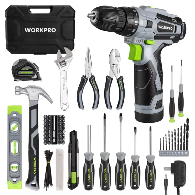 108-Piece Home Tool Kit with 12V Cordless Power Drill and Storage Case