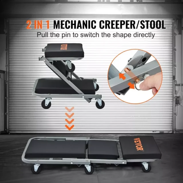 Tired of crawling on the cold garage floor or awkwardly bending over during car repairs? This 2-in-1 rolling creeper and mechanic seat transforms the way you work. Designed for maximum comfort, flexibility, and support, it easily switches from a low-profile creeper to a padded rolling stool in seconds—saving your back, your knees, and your time.