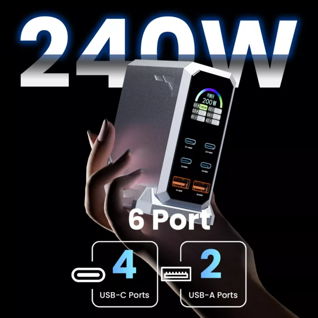 • Ultra-fast charging with 240W total power output – charge laptops, phones, and tablets all at once.
