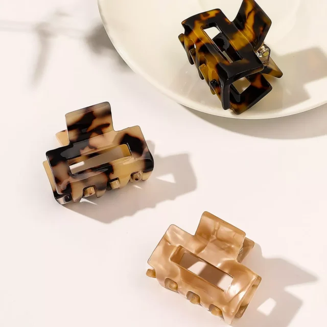 Transform your everyday look with this 3-pack of small tortoise hair claw clips. Designed for women who love a touch of elegance, these rectangle-shaped clips offer the perfect blend of function and fashion. With a compact size of approximately 1.34 inches, they are ideal for holding smaller sections of hair, securing bangs, or creating half-up hairstyles with ease. Each pack includes three rich, earthy tones—coffee leopard, brown leopard print, and classic brown—so you can match your mood, outfit, or occasion.