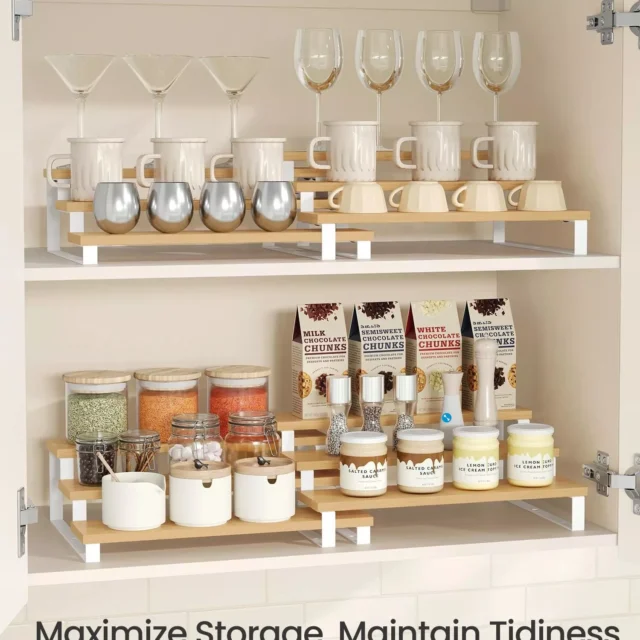 Bring order and elegance to your kitchen, vanity, or display shelf with this 3-tier display riser set. Designed with a beautiful blend of cloud white metal and natural beige engineered wood, these tiered stands add both function and style to any space. Whether you’re organizing spice jars, perfumes, cupcakes, or collectibles, these risers help you showcase everything clearly and beautifully.