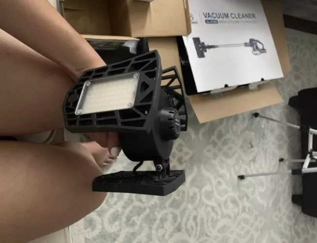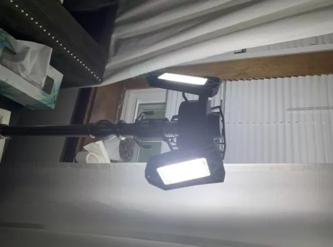 Once the light powers up, adjust the lighting angle to your desired position by moving the LED head and panels. Exercise caution when installing, as the light panels can heat up; also, do not stare directly into the bright LED lights.