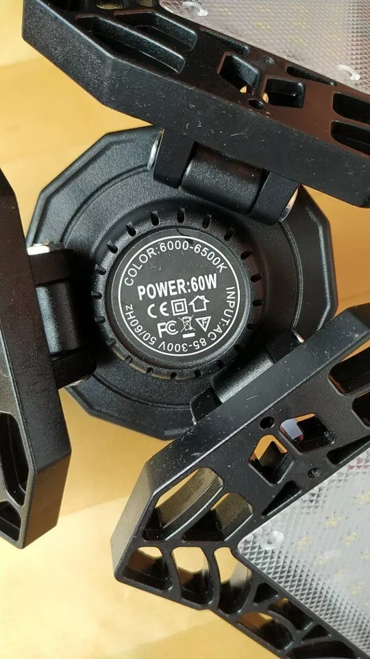 Three 3 x 2in diode panels shine 6000K (white light) for powerful illumination in any space. Made of plastic, our 40W Triple Garage Light makes a great choice for basements, garages, backyard sheds, parking garages, storage sheds, and so much more.