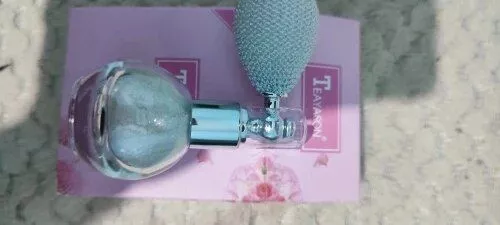 I was intrigued by the uniqueness of these products, and they didn't disappoint! While they're smaller than expected, the packaging is attractive and adds a nice touch to my vanity. It takes some practice to achieve the desired spray effect, but even if you apply too much, blending it out with a brush or sponge is effortless. I also enjoy using it as an eyeshadow to add sparkle and highlight. The soft baby powder scent is delightful and fades gradually.