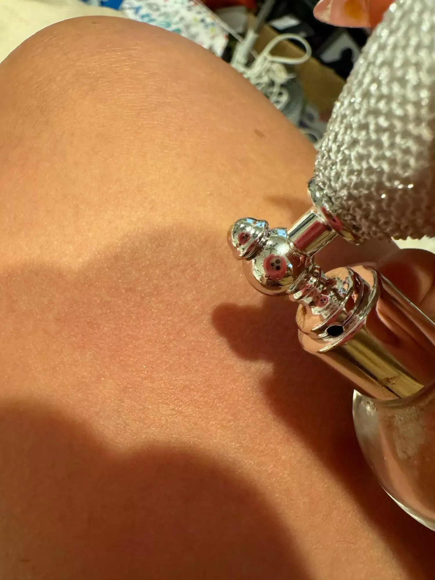 During the holiday season, I encountered a similar product in an upscale women's boutique, but the price deterred me. Opting to search for alternatives, I turned here and discovered this gem. I bought four bottles, impressed by how stunning it looks when sprayed onto the skin, hair, or face. The fine iridescent powder provides a subtle yet captivating glow. I'm excited to see how it complements a summer tan!