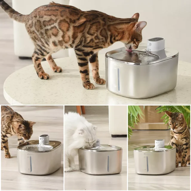 Whether you’re at home, traveling, or simply want a cleaner solution for your pet’s drinking needs, this fountain’s smart sensor, ultra-quiet motor, and sleek stainless steel body make it a practical and stylish addition to any space. Plus, its large 135 fl oz capacity ensures your furry companion stays hydrated for up to 10–15 days without refilling.