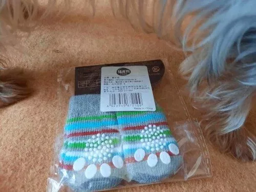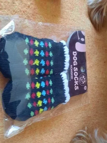 My senior dog has been struggling with mobility on tile and wood floors lately. These socks have made it easier for her to move around, although she's not too fond of wearing something unfamiliar. They're straightforward to put on and remain in place for a good amount of time. I'd recommend them for indoor use. They're made of quality materials, and the vet said they're safe to use on all four paws. While my dog initially dislikes them, it's amusing to watch her try to adapt. They're of excellent quality and provide better traction for her in the kitchen. I mostly bought them for entertainment, but they do serve their purpose well as dog socks and are a great value.
