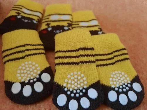 These socks are incredibly cute! I purchased them for my elderly black lab, who usually despises having her paws handled, yet she’s been comfortably wearing these all day. The only minor drawback is that, being socks, they can easily get wet or dirty outdoors. To manage this, I remove them whenever she needs to go outside and slip them back on afterwards. It's a slight inconvenience, but completely worthwhile. She's experiencing far less slipping on our wooden floors and finds it easier to get up while wearing them. This was a brilliant purchase, and I only wish I had discovered them earlier!