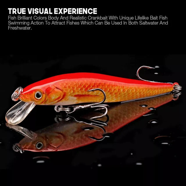 Step up your fishing game with this 60mm Floating Crankbait Minnow Lure – a compact, high-performance lure designed to trigger aggressive strikes from a variety of predator fish. Whether you’re casting from the riverbank or reeling in from a boat, this ultra-realistic hard bait is your secret weapon for attracting everything from bass and trout to redfish and pike.