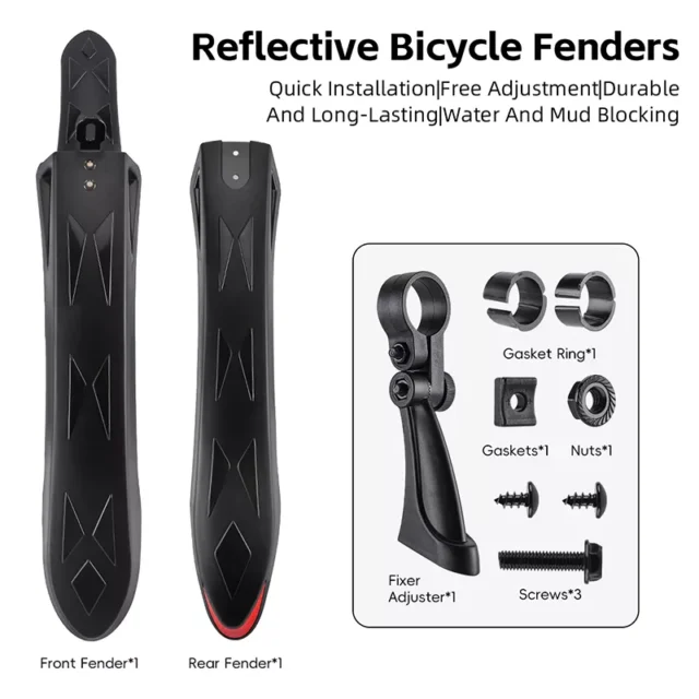 Take on muddy trails, wet roads, and unpredictable weather without a second thought. These adjustable bike fenders are designed specifically for 26 to 27.5-inch mountain bikes, giving you complete front and rear protection from splashes, grit, and grime. Whether you’re commuting, trail-riding, or exploring off the beaten path, these fenders have your back—literally. Easy to install with a quick-release mechanism, they combine durability, flexibility, and sleek design in one essential cycling accessory.