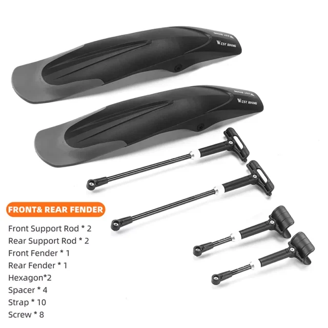 Crafted from a blend of tough yet flexible materials including PP and PET plastic, along with a solid aluminum alloy support rod, these fenders are both lightweight and durable. Their quick-release system and 360º adjustability mean you get the perfect fit and angle for your riding style—without sacrificing comfort or performance.