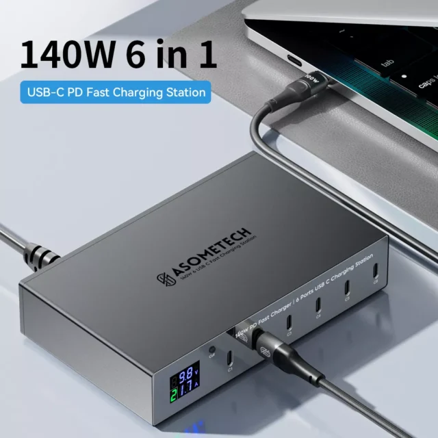 ASOMETECH 140W 6-Port USB-C PD Fast Charging Station with LED Display