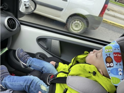 Our son’s head was hanging and wobbling during our 4 hour trip and you could tell he was uncomfortable but too tired to “care”. On the way back we had the band and afte he fell asleep we put it on and it was a life changer. Totally recommend!