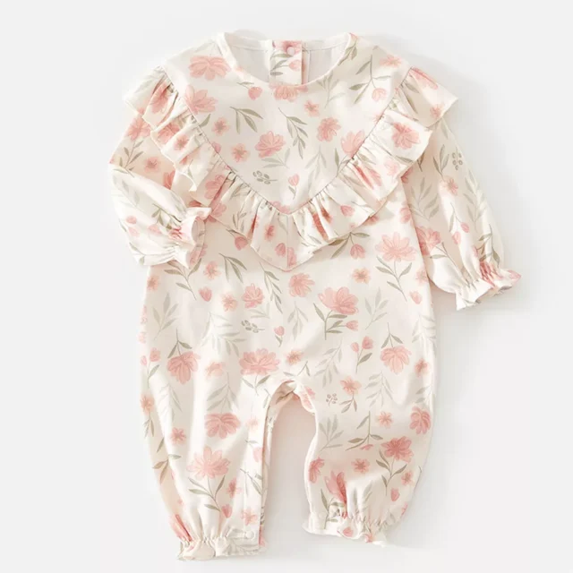 Dress your baby girl in sweet elegance with this charming long sleeve floral cotton romper, designed especially for spring and autumn adventures. Whether it’s her first birthday, a family photoshoot, or a casual day out, this boutique-style onesie brings together comfort, cuteness, and quality in one delightful piece. The soft floral print and princess-inspired look will make your little one the star of every moment.
