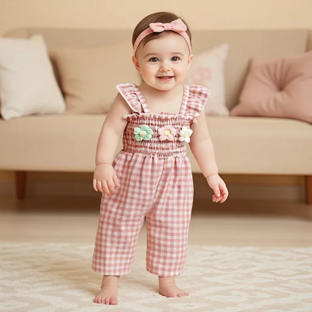 This romper is more than just cute—it’s ready for every occasion. Dress it up for birthday parties or keep it casual for playdates at the park. The adjustable suspender-style pants add a trendy twist while ensuring a snug, comfortable fit that moves with your baby girl. Whether she’s taking her first steps or twirling in the backyard, she’ll look picture-perfect in this all-season favorite.