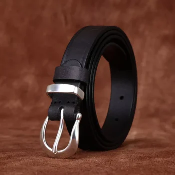 2.4CM Genuine Leather Women’s Belt with Silver Plated Copper Buckle