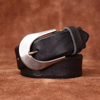 Men’s Genuine Leather Belt – Vintage Western Style with Pin Buckle, 1 Inch Wide