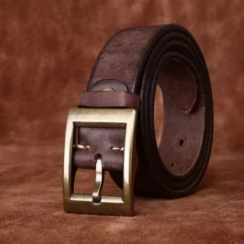 Vintage Men’s Genuine Leather Belt with Copper Pin Buckle