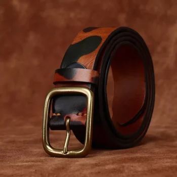 Men’s 1.3″ Thick Genuine Cowhide Leather Belt with Solid Copper Buckle