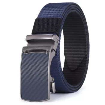 Men’s Leather Ratchet Belt with Carbon Fiber Pattern – Automatic Buckle