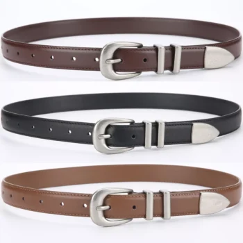 Women’s Fashion Leather Belt with Retro Metal Buckle