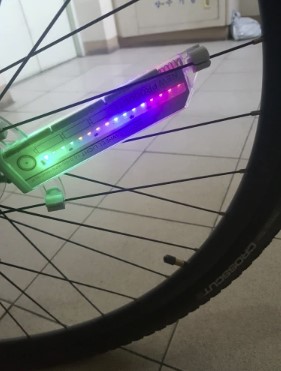 I'm using it on my electric bicycle I was very colorful it's fun it makes me impossible not to see what I'm writing I just wish I could adjust where it stays on my spokes other than that it's great