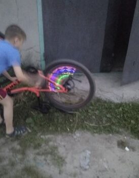 Very cool looking at night. I saw people with them when we were camping so I wanted to try it. They’re a ton of fun to use at night. We got a lot of comments and questions of where to get them. I’m getting them for all of our bikes now.