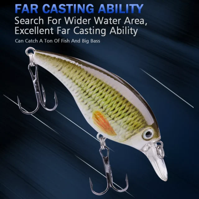 This crankbait is effective in both freshwater and saltwater, making it a versatile choice for a variety of fishing spots such as lakes, rivers, reservoirs, and even coastal areas. Its floating action prevents snagging, making it an excellent option for beginners and seasoned anglers alike. The lure’s sharp treble hooks ensure a secure catch, while its easy-to-control weight distribution allows for long, accurate casts.