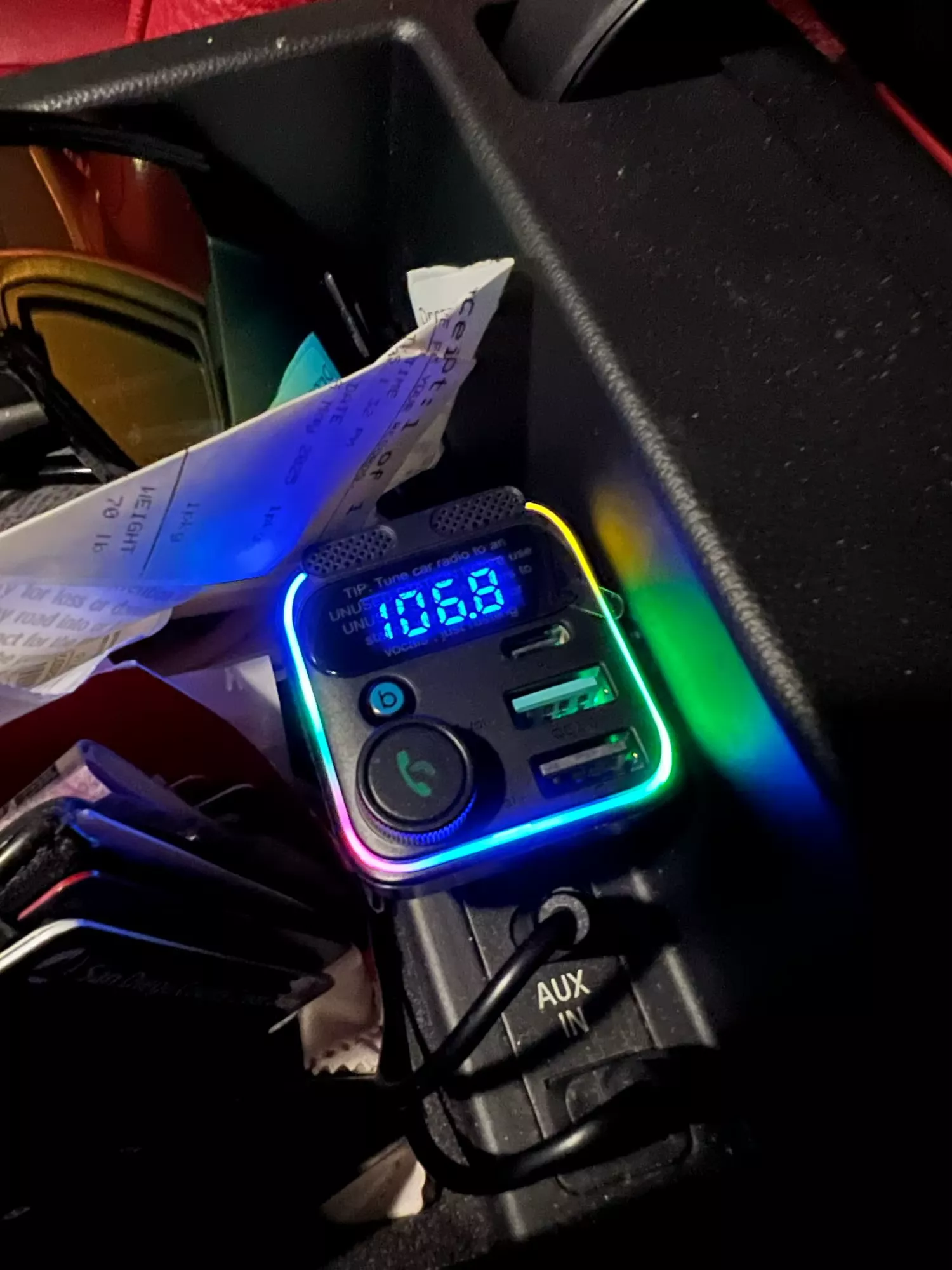 This little gadget is a lifesaver! The fast charging keeps my phone juiced up on long trips, and the Bluetooth connectivity is rock solid. Plus, that one-touch bass button? Total eargasm! 🎵🚗💨