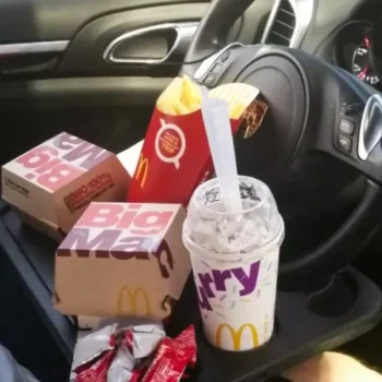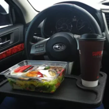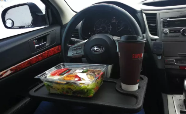 Not working? Then it’s probably meal time. Yeah, that’s right — flip this tray over and you get a full-on meal tray.Complete with a drink holder mold and place to hold your main meal, eat in peace wherever you are, whether on a solo road trip or long car drive somewhere. No more using napkins to create a makeshift eating space or dropping ketchup and fries all over your cup holder or center console.