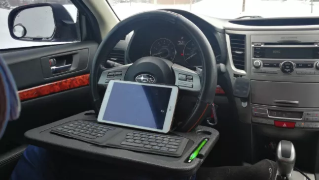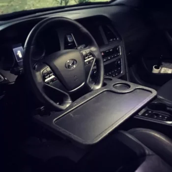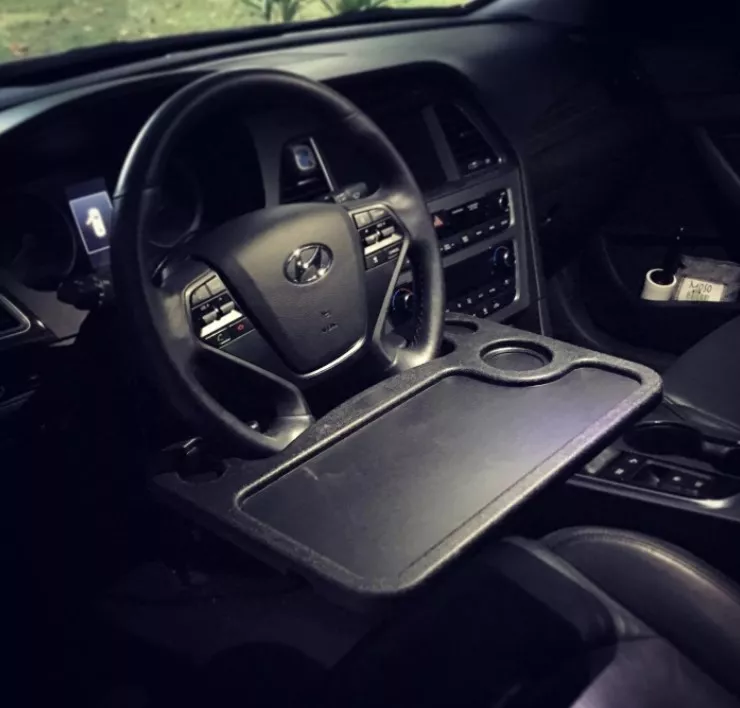 Measuring 11 inches across the steering wheel hold, our tray snugly fits the steering wheel of most modern cars. No balancing on your knees or anything. Whether you’re watching a movie to kill time or are finishing up a weekly report for work, our tray will support you until the end.