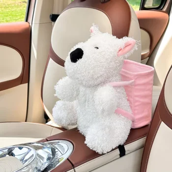 Plush Dog Car Armrest Tissue Holder & Storage Box