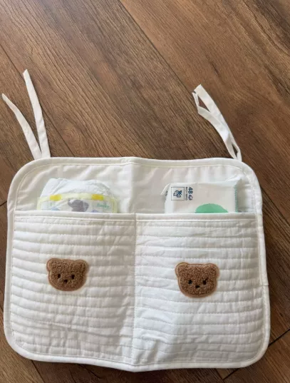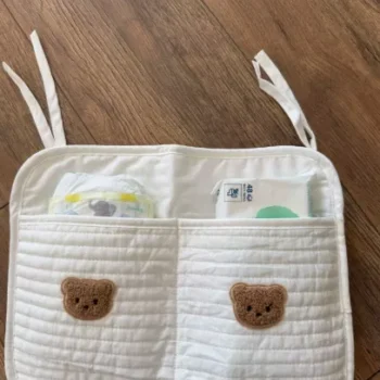 Perfectly suited for newborns and growing infants alike, this stylish storage bag hangs securely on any crib, bedside, or even stroller. Its simple yet charming cartoon bear design complements any nursery decor and makes it a sweet addition that’s as functional as it is decorative.