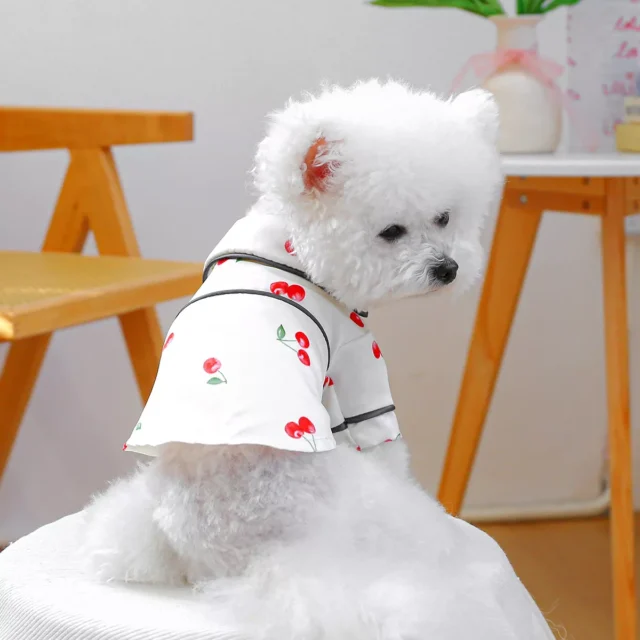Whether you’re dressing up your pup for a sunny walk or simply adding a layer of style for lounging indoors, this cherry-print dog shirt is an instant favorite.