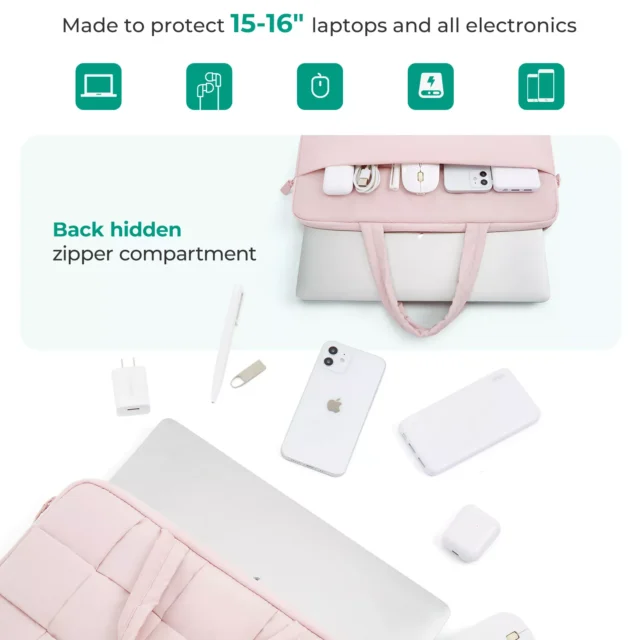 Beyond its fashionable look, this laptop sleeve is engineered to protect. Its four-layer protective structure includes soft sponge and shock-absorbing foam to guard against accidental bumps and drops. A waterproof outer layer shields your device from splashes and light rain, while the anti-theft double zipper keeps your valuables safe. The padded handle offers a secure and comfortable grip for daily travel.