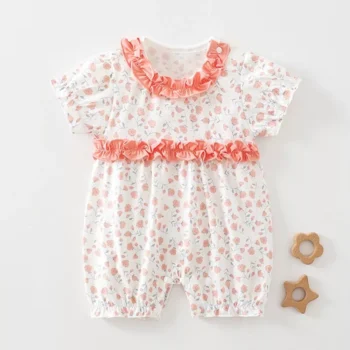 Floral Ruffle Baby Girl Romper – Cotton Summer Jumpsuit for First Birthday