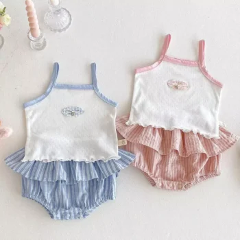 Baby Girl Summer Sleeveless Outfit – 2-Piece Vest and Shorts Birthday Set