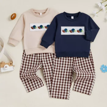 Toddler Boys 2-Piece Autumn Outfit with Rugby Top & Plaid Pants