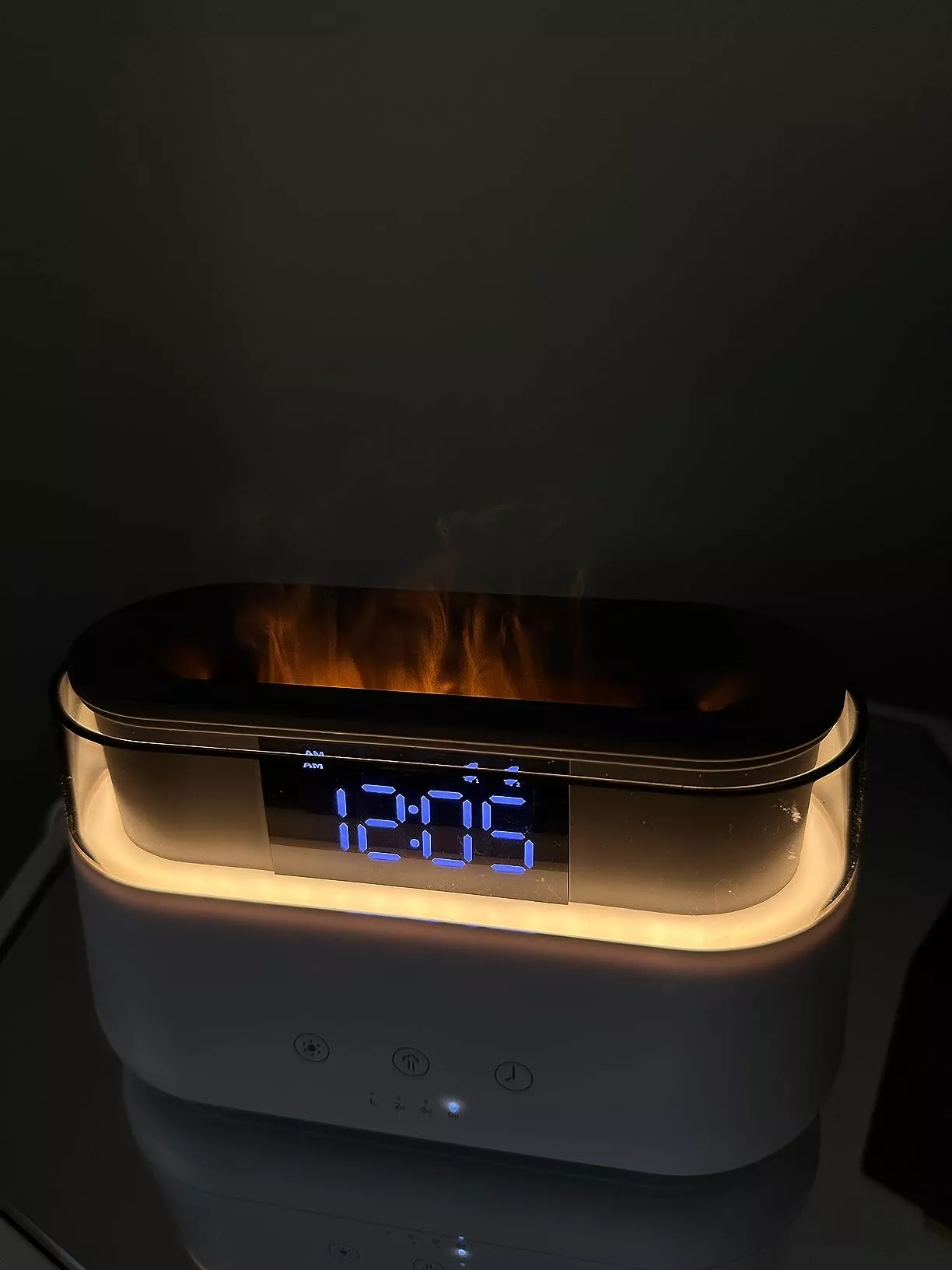 • Multifunctional Design: Combines a clock, air humidifier, essential oil diffuser, and colorful lamp all in one unit.