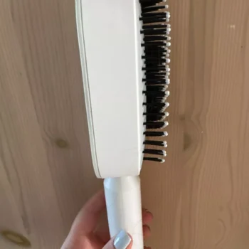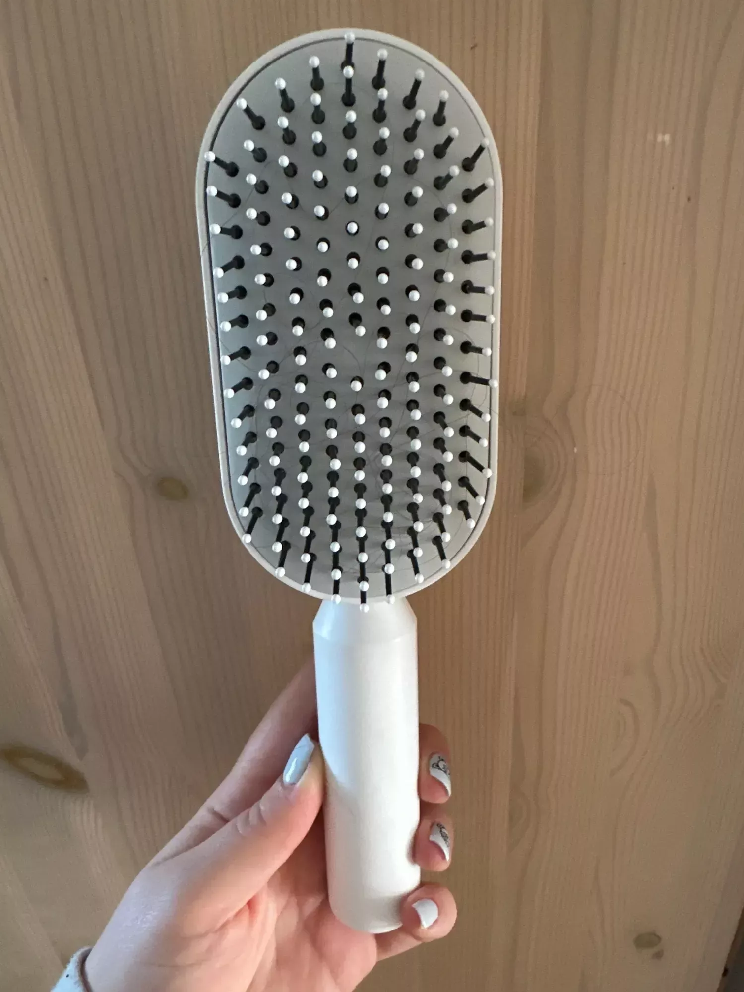 I've been rocking this brush for a few weeks now, and let me you, it's one of the smartest buys I've made in ages. The detangling feature is smooth as butter but still does its job right, even on my thick-as-a-brick, coarse hair. It glides through like a dream without any of that nasty pulling or breaking. Now let's talk about the scalp massage aspect - pure bliss! Every morning feels like a trip the spa with this baby in hand. It works its magic on your scalp making you feel relaxed and ready to start your off right. Talk about self-care! Living where humidity rules supreme can be tough on my hair causing frizz galore. But thanks to this gem and its anti-static material, those frizzy bad hair days are becoming history! This little detail is an absolute game-changer for anyone who knows what it’s like battling with unruly locks daily. But hold up cause there's more! What really makes this product shine brighter than a diamond is the one-key self-cleaning system. Seriously y'all, cleaning has never been easier or more convenient; no more wrestling with hairs tangled around bristles till kingdom come! Just press that button and voila - all clean! So if you're tired of struggling with stubborn knots every morning or just want something that'll give your scalp some love while keeping frizz under control – look no further than this brush here folks because it ticks all those boxes plus some extra ones too!