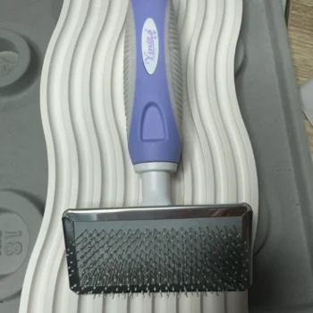 What sets this grooming brush apart is its gentle design paired with effective hair removal. The stainless steel comb reaches deep into the undercoat without scratching or irritating your pet’s skin. The ergonomic plastic handle ensures a steady, comfortable grip, making grooming sessions easier on your hands.