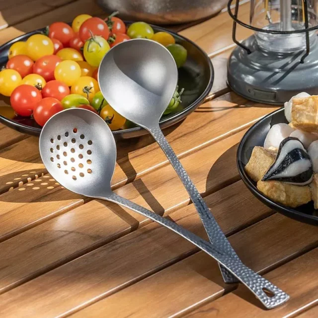 Don’t settle for flimsy plastic or heavy steel. Upgrade your cooking experience with this sleek, durable titanium ladle. Whether you’re deep-frying on the stovetop or simmering stew over a campfire, this spoon delivers reliable performance every time. Its lightweight strength and easy-to-clean surface make it a favorite among chefs, home cooks, and outdoor adventurers alike.