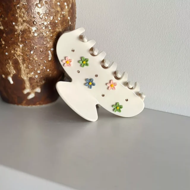 This exquisite hair claw is the go-to accessory for women who value both style and convenience. It works beautifully for holding hair in place on busy mornings, styling elegant updos for dinner dates, or keeping your look fresh on weekend getaways. With its refined floral details, it stands out as more than just a practical hair accessory – it is a statement piece that enhances your overall style.