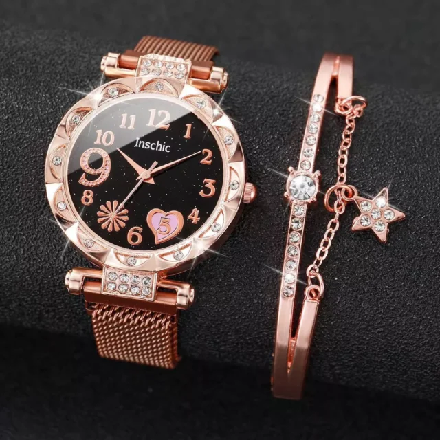 Elegant Women’s Quartz Watch & Bracelet Set – Magnetic Mesh Strap, Fashion Style