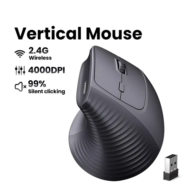 Ergonomic Vertical Wireless Mouse 2.4G with 4000 DPI and Silent Buttons