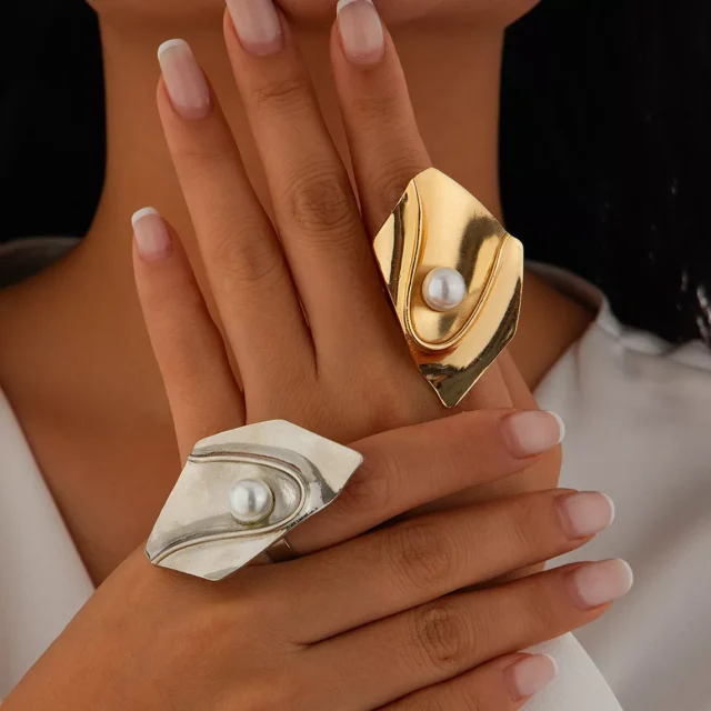 Step into elegance with this Exaggerated Geometric Adjustable Gold Ring — a stunning fusion of vintage charm and modern artistry. Designed for the confident woman who loves to make a statement, this ring features a striking irregular shape finished in radiant gold or sleek silver. An imitation pearl accent adds a touch of timeless grace, making this piece a must-have accessory for your jewelry collection.