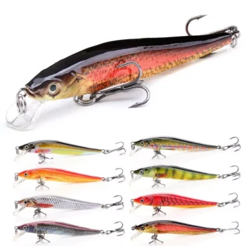 Top Fishing Lure with 3D Eyes & Strong Treble Hooks – Minnow Wobbler for Freshwater & Saltwater