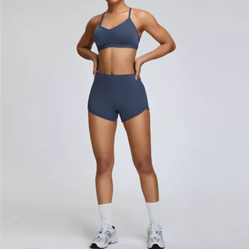 2PCS Women’s High-Waist Yoga Set – Sports Bra & Shorts Activewear