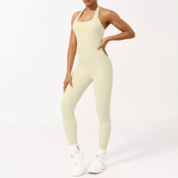 Women’s One-Piece Cross-Back Yoga Jumpsuit – Breathable, Stretchy & Stylish